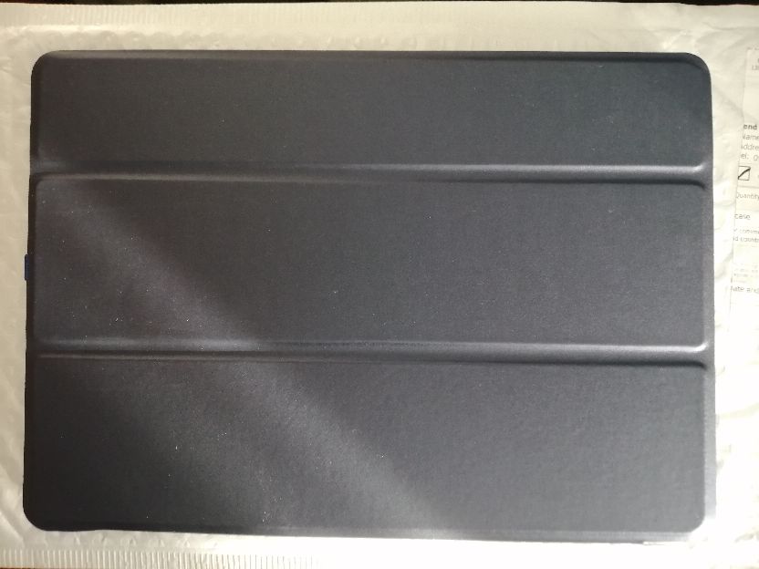 そして中身は薄っぺらくて軽いもので、ipadのケースですね~~背面は透明なプラスチックでして、表は二つ折に出来て本体を横に立ててみる事も可能、表のカバーを閉じた状態でipadの画面をスリープ状態に出来ます(単に磁石で動作する仕組み^^)送料込みで500円前後ですよ。
