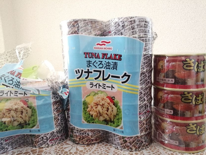 一部残っている缶詰類(ツナ缶16個セットや鯖缶等)ツナ缶は1缶を2日で消費します。青魚類の取得が少ない部分を補う意味では有効ですよ^^