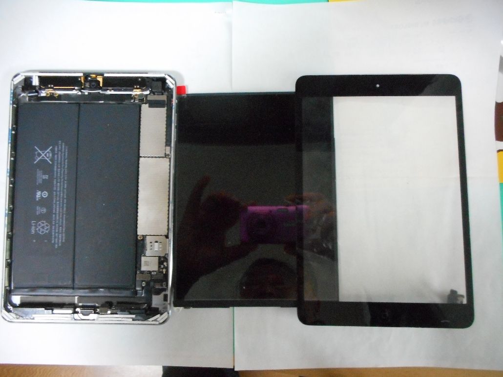 貼り終わってから、液晶を載せる前に電池と液晶の間にアルミ板のセットが必要です。それが終わると液晶を載せて螺子止めしますね^^そしてガラスを載せるのですが~ガラスの下段の左右にに小さな磁石が貼っておく必要が^^これはipadminiのケースに納めてガラス面に保護蓋を締めると磁石で軽いロックが働きます。同時にipadminiの機能的にスリープが働き画面が暗くなりますね^^バッテリーの節約になりますよ。意外と細かい配慮がされているんですよ~~^^