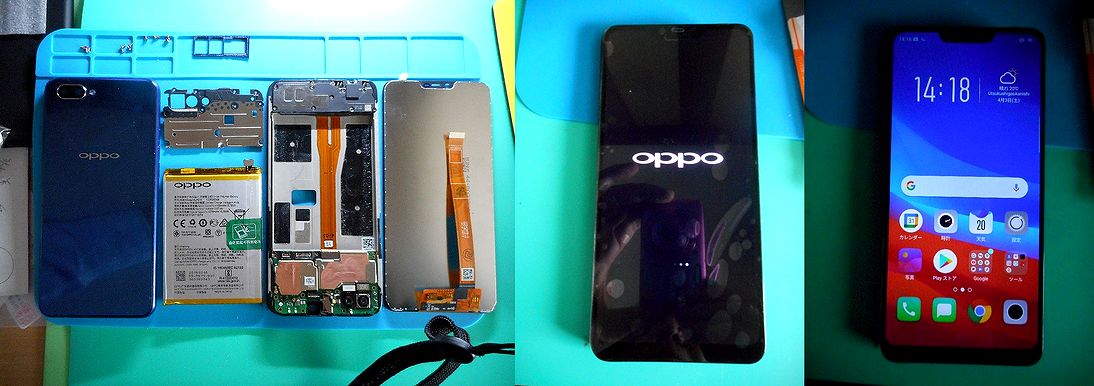 以前、中華製スマホ(OPPO R15 neo)の修理ビデオが見つからず、海外でのビデオを見つけても詳細ではなく諦めて、基本は同じだろうとOPPO社の別の機種の修理動画を参考に強行しましたよ^^
