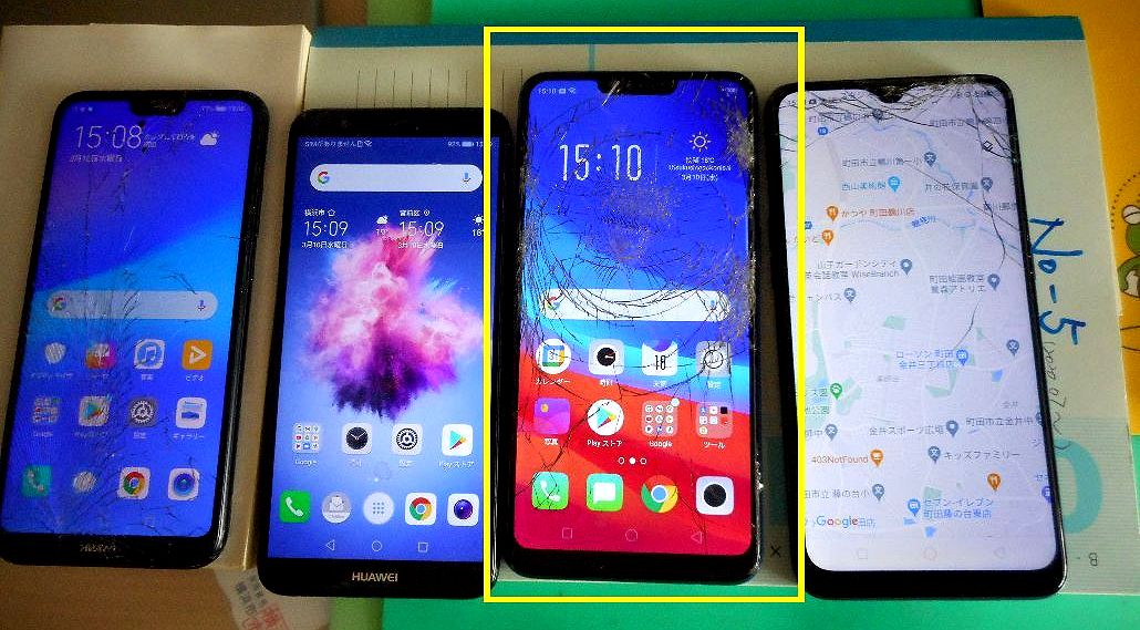 対象機種は下記の写真の黄色い枠で示したスマホです。