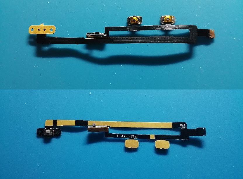 このフイルムケーブルは、iapd本体の横に付いている音量上下ボタンの調整と電源ボタンにてスリープさせる機能として連動しています。これを取り換えるのも結構面倒なんですよ~~