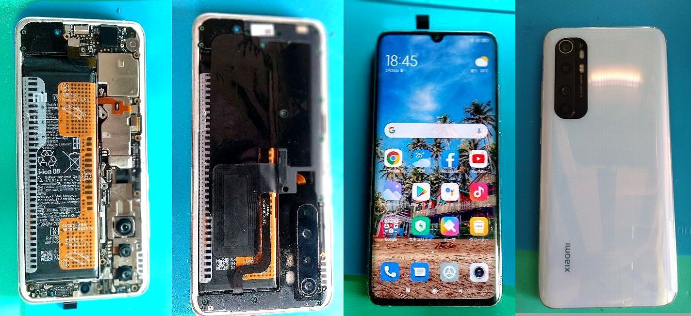実はジャンク品の高解像度のカメラを搭載したスマホ(Xiomi Mi 10 Lite)を早く入手していたのですが、液晶面と背面ケーズも破損が激しく、中国通販へ注文したものの遅れ遅れでて、やっと揃ったもので先般実施しました。入手時の表裏の写真ですね^^(電源入れると起動します)