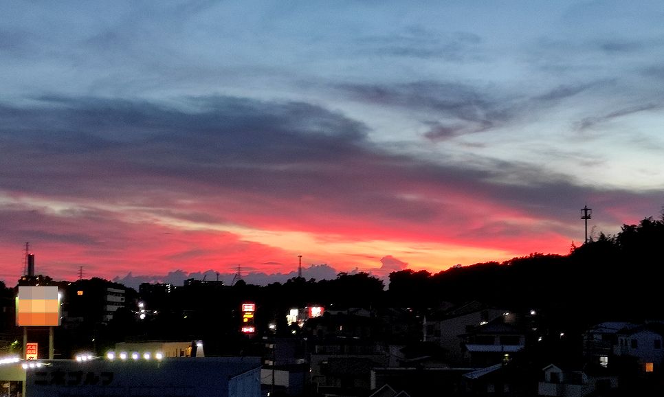 最近夕焼けに親しむ日々が続いております。同時に梅雨も明けた事もあり我が部屋から西の空を拝んでおりますよ^^(15日夕刻)