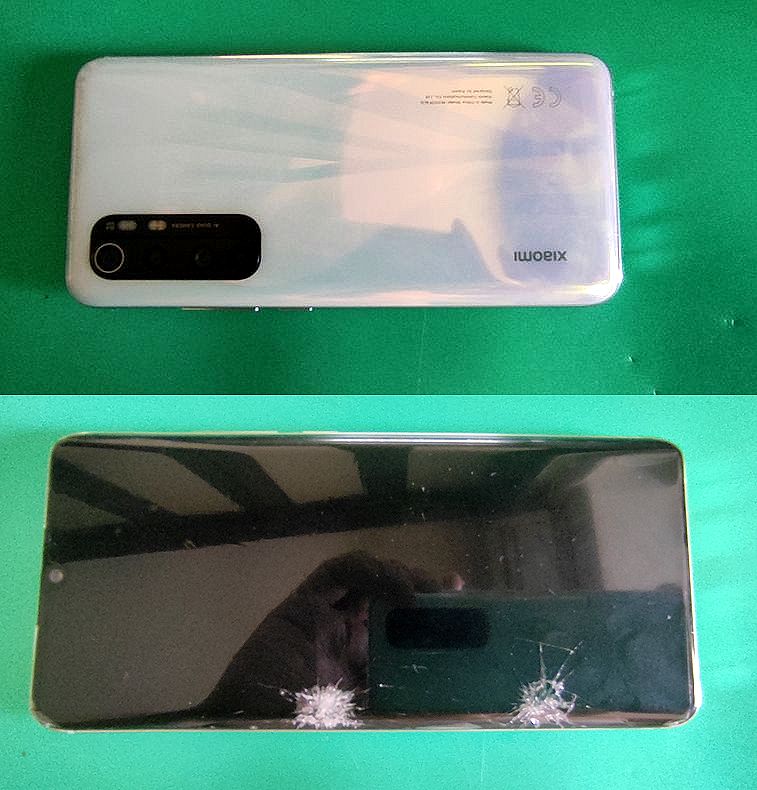 上部の白い部分が背面で、傷など一切なく綺麗ですね~~下段は正面でして2か所の落下痕でガラス面が大きな傷が入っています。表面だけ交換すれば良いのでしょうかね~~