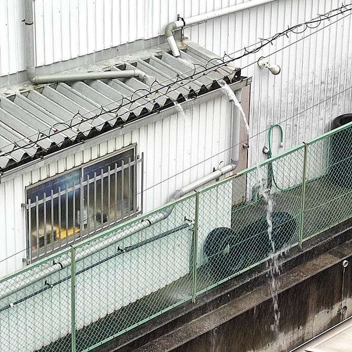 先程、本日10時前の土砂降りでして、外を見たら隣の2階建て事務所の戸井から勢いよく吐き出す雨水が凄かったんですよ~~