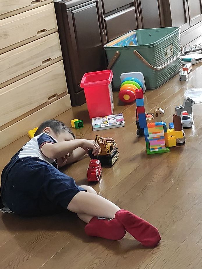 孫は真っ先に「おもちゃ箱」目当て^^一人で遊んでくれてます^^