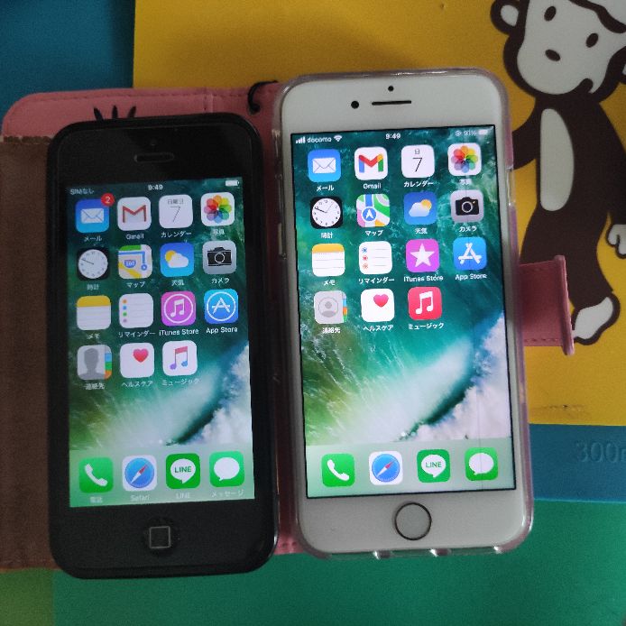 旧機種(iphone5c 16gb)と後継機(iphone8 64gb)ですよ~~ソフトケースまで手配して提供です。
