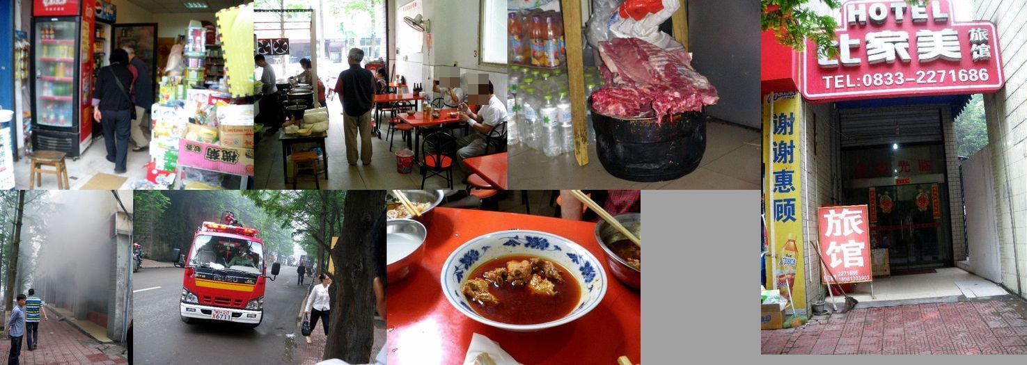無事に楽山の大仏を観光出来て、安宿ホテル(旅館)を彼が案内してくれて1部屋130元(2000円強)って安過ぎ~~2人で泊まれば1人@1000円強です^^下記の写真の右が「比家美;旅館」ですよ^^