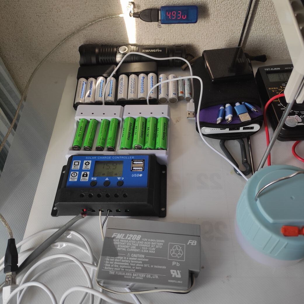 スマホへはUSB出力から直接充電も出来ました。電池類は日々充電できております。