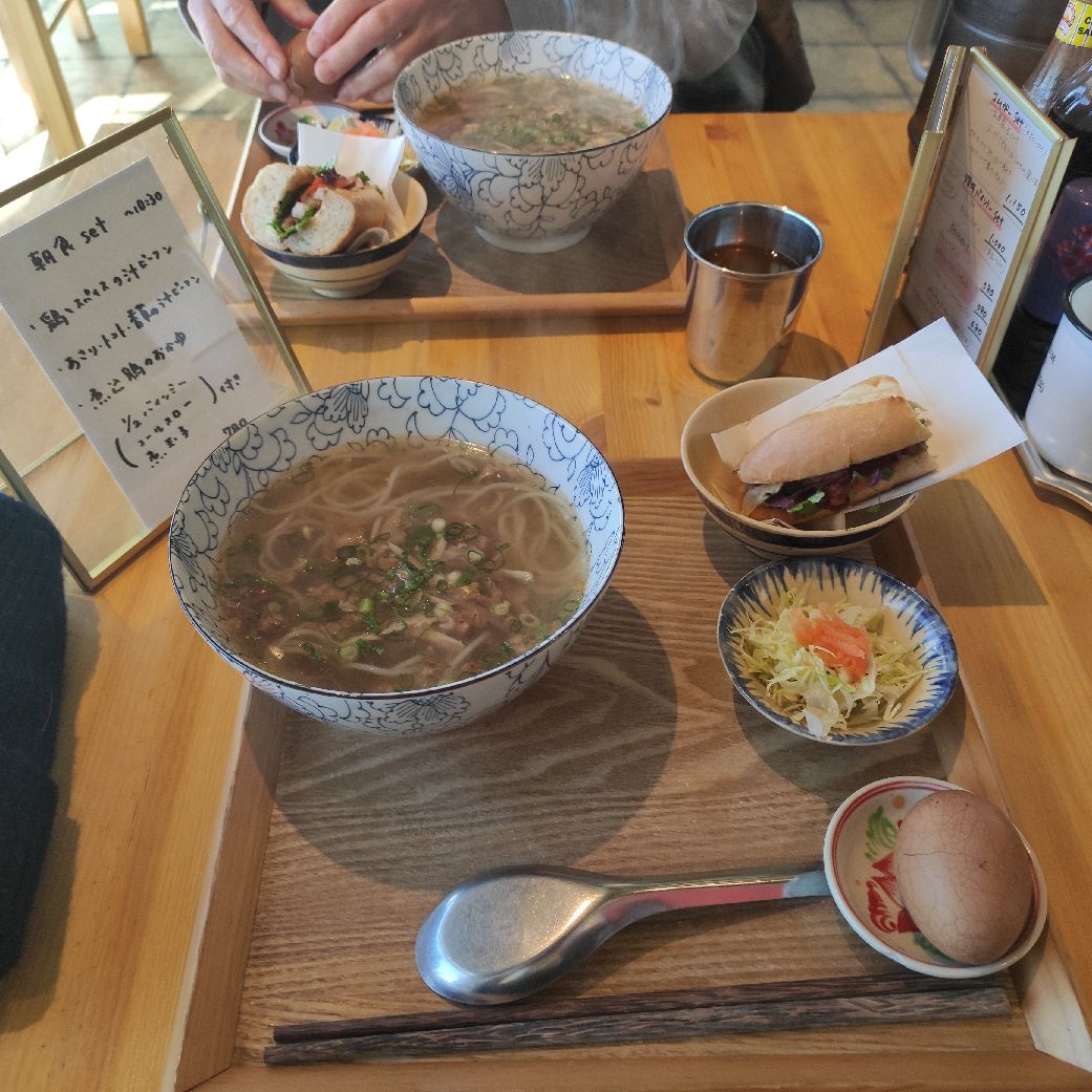 鶏味の①フォーに②バイミーと③サラダに④味付けゆで卵が付いていました。@750円だったかな?