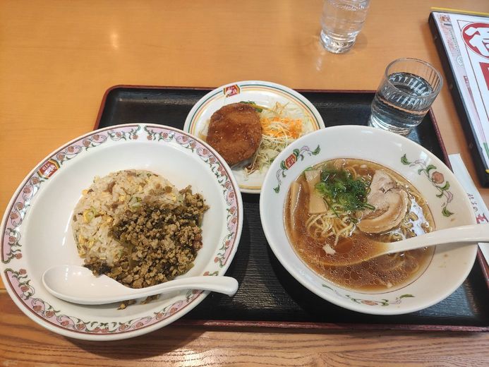 チャーハン+ミニ中華そば+コロッケサラダ=785円だったかな?婆さんは「天津チャーハン」でした。少し量的に多いかな~とは思ったものの、気持ちよく頂けました。