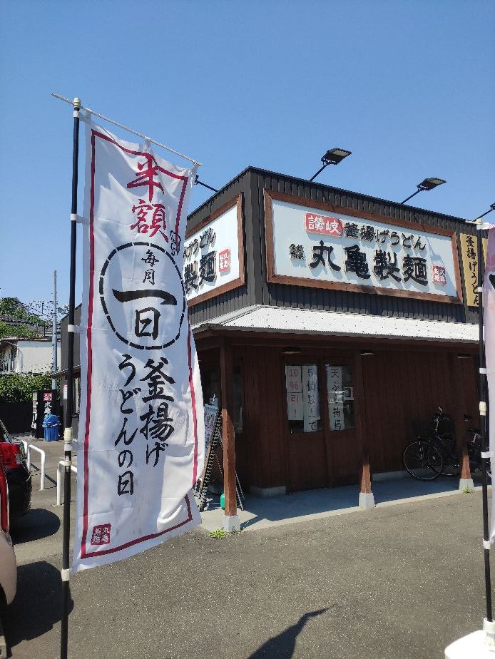 実は今日は7月1日、婆さんが何を調べたのか?1日は丸亀製麺の「釜揚げ」は半額だとの事、なら行ってみよう~って事で来ましたよ。近所ですから徒歩で数分ですけどね~~^^
