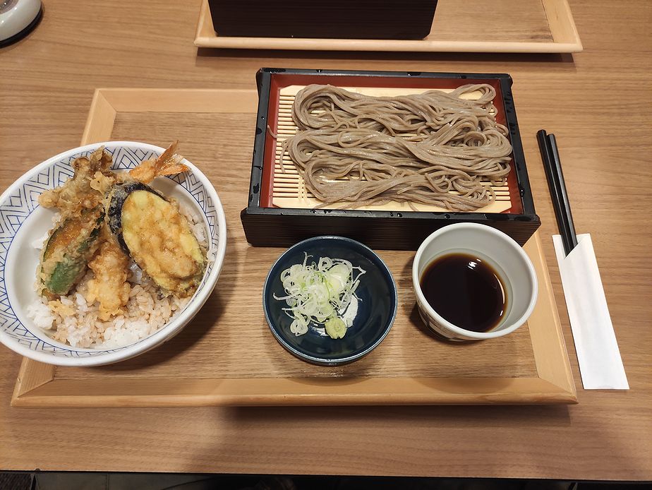 夢庵には13時半過ぎですから、空いていますね。お蕎麦が食べたくて「天丼とお蕎麦セット」を2人とも注文です。夢庵 | すかいらーくグループ (skylark.co.jp)