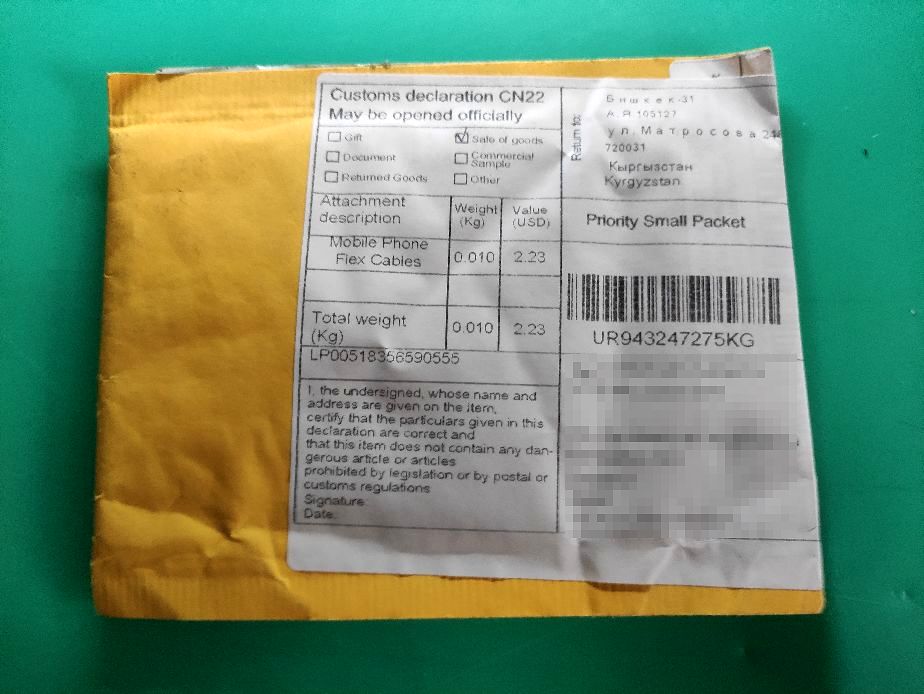 またもや、キルギスタンから小さな袋に入った部品が届きました。