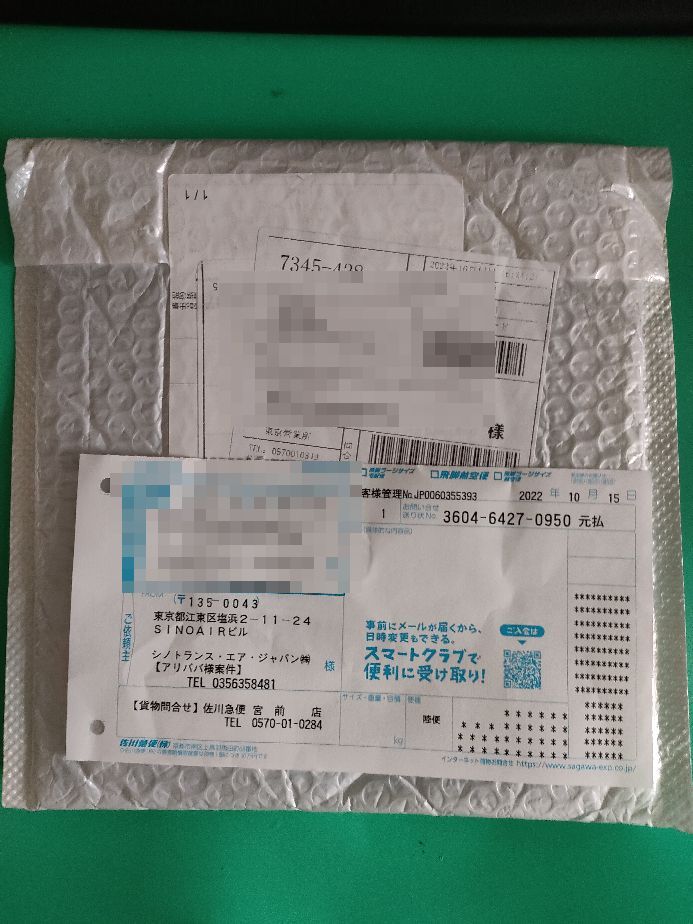 今回も佐川急便が日本国内配送担当として引き継いだのでしょうね~~薄っぺらい袋です。