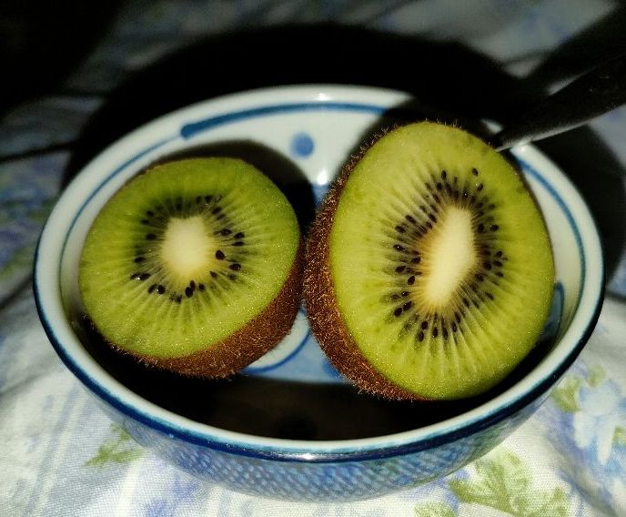 その夜には、デザートとして貰い物の「キーウイ」です。