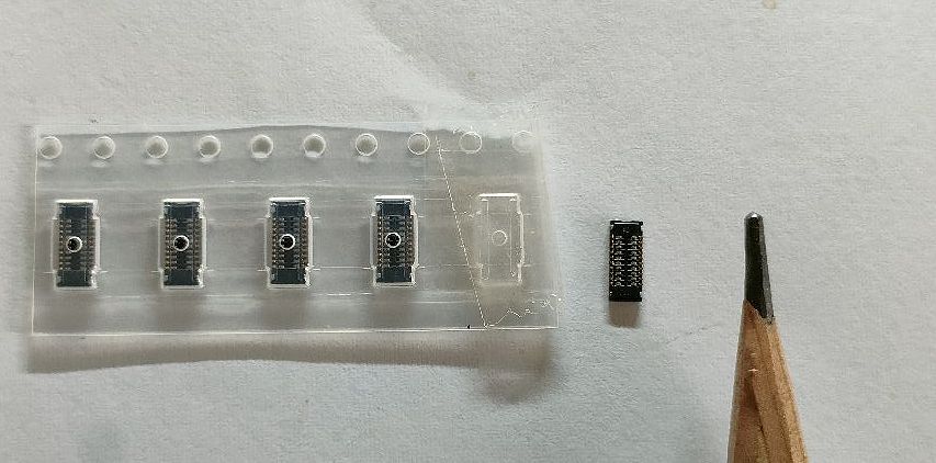 これは多少大きいものですが半田を付けるのには、本当に厳しいんです。長さは約5mm程ですが端子が4mm以内に10個もの端子が在って本体に半田する訳ですが~0.2mm程の端子を両側に20個、全てが繋がらないと機能しません。これもホットガンを使いますが、当て過ぎるとコネクター自身が熱で溶けたり歪んだりして苦労しましたね~~