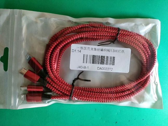 中身はスマホ等の充電ケーブルです、これは多少特殊と申しますか~電源部はUSB-Aタイプでして、出力側はUSB-Cタイプ+マイクロUSB+iphoneが2個=4in1タイプです。そうですiphone用に2本の出力がある訳ですよ^^珍しいです。この商品は送料込みで@400です。