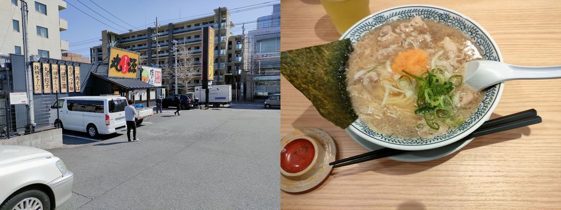 車検屋へ行く前にはお昼時間、通り道に行きつけのラーメン店「丸源ラーメン」へ寄りました。
