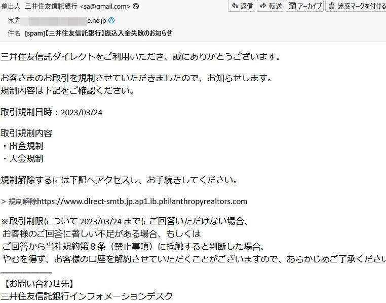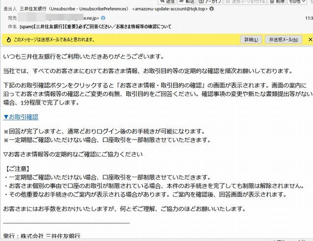 詐欺も巧みに遣って来るものですね~~しかし大手銀行らしからぬ文章ですよ??もう少し丁寧だと思うのですが~~ね~~、こんな内容じゃ~老いぼれ爺を騙せませんよ~~