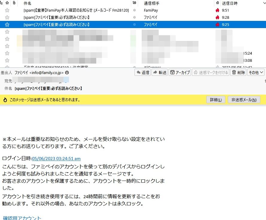 今日は同じ関係の詐欺屋さんが続けざまに3件ものメールです??具体的にその3件を確認すると面白い?と言うか~見て下さい。今朝続けざまに9時25分、9時28分、9時51分の3件です。