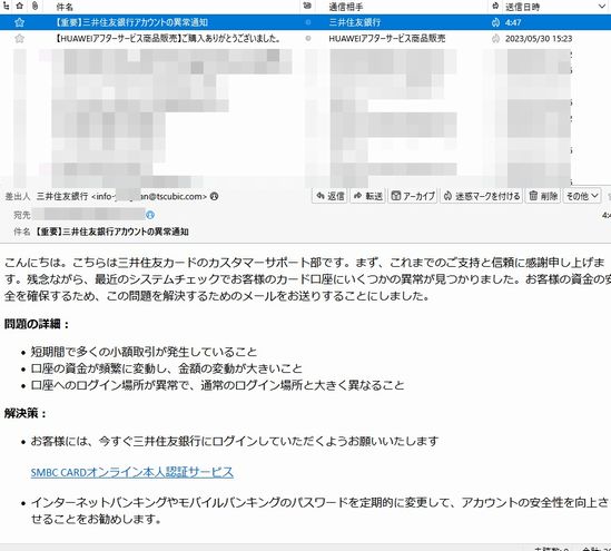 そんな状況であるにも関わらず、三井住友銀行からのメールとなっている?銀行のアカウント異常通知?って事も変でしょう~~詐欺屋さんは理解していない?ま~中国人でしょうから、無理も無いか~