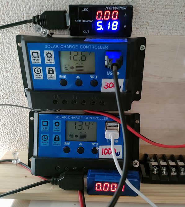 ケーブルは換気口を通じて配線しました。ケーブルはインターフォン用を購入して配線でしました。そうした結果、効率よいのか?300wのパネル側のバッテリーが満杯になる事は有りませんでしたが、即座にレベル4迄上がりました。^^近い内にレベル5迄行くでしょう。