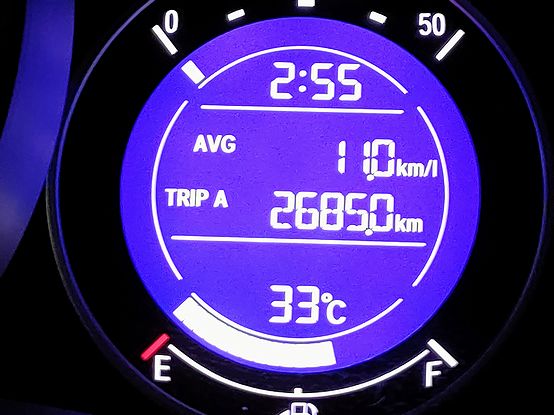 そして先週もガソリンが底をついた、ガソリンゲージは2/20を指しており2円引きで3000円分を入れました。その結果が以下の写真です