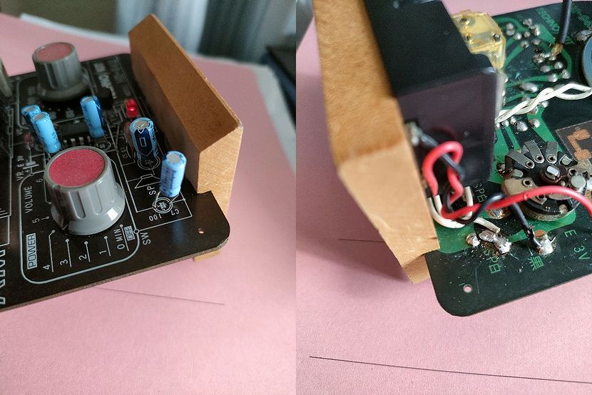 手前の抵抗の片足が浮いました。背面の部分に半田小手を当てて充分過ぎる程半田を盛っておきました。
