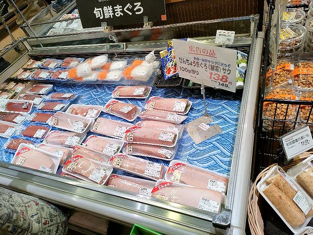 そうです、近くのスーパーのwebチラシにて「ビンチョウ鮪」が100g138円だそで早速出向きましたよ^^婆さんipadにて細かくチェックしていましてね~
