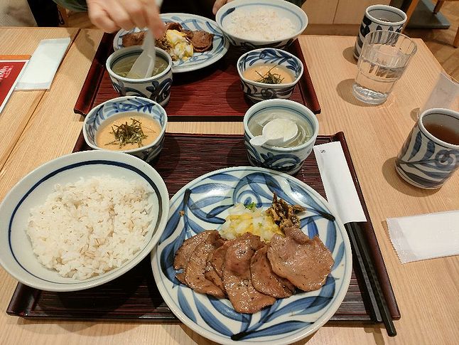 地下の店舗へ行くと席は空いていました。注文は牛タン7枚ランチセットです。