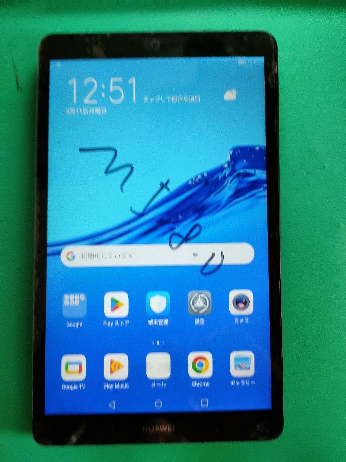 それらとは別に、修理バイトを早々と準備しつつヤフオクやメルカリを検索している中で、HUAWEI社のタブレットジャンク品を見つけました。これも安値で入手するために自己経験値で直せると判断し、質問もせずに入札締め切り時間ギリギリに入れて落札しました。