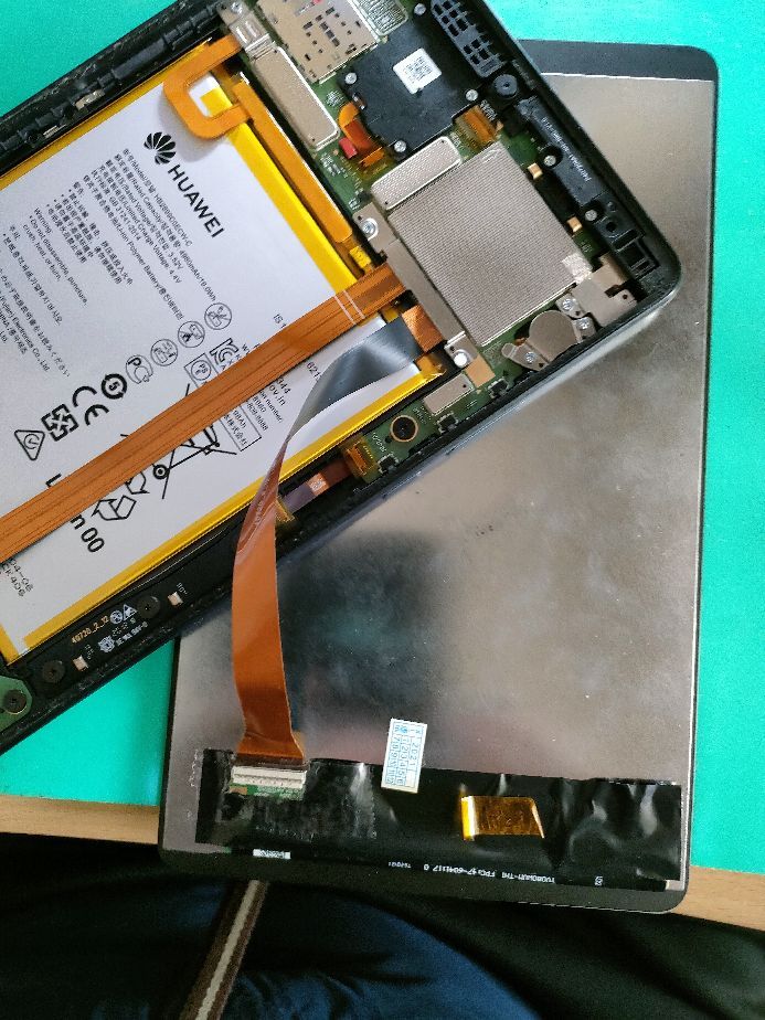 表面の液晶が上部と下部に破損があり、一部タッチも出来ない個所が存在します。このタブレットの液晶パネルは手元に有ったもので、即座に分解しまして。