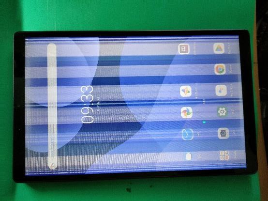 本体が届き、電源を投入すると写真の通りジャンク品です。爺が予想するに液晶パネルの部分的に破損でしょう~パネルを交換すれば治る物と思います。