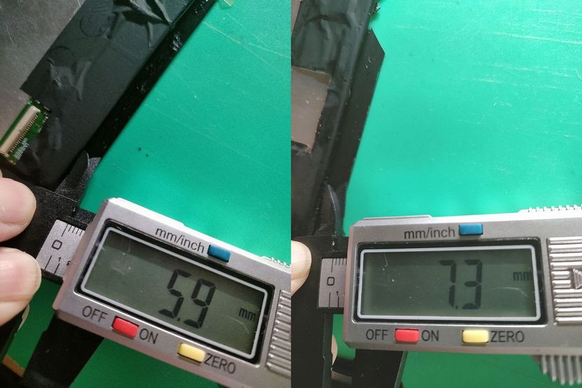 おいおい?何だよ~~再度繰り返すが同様に押し込んだ時に画面が消える?原因が良く判らなかったが、再度調べると本体に押し込んだ時点で本体から液晶へのケーブルが抜けてしまう?何でだ?翌々調べると液晶部が表面ガラスより下部に貼り付けている事が原因でした。