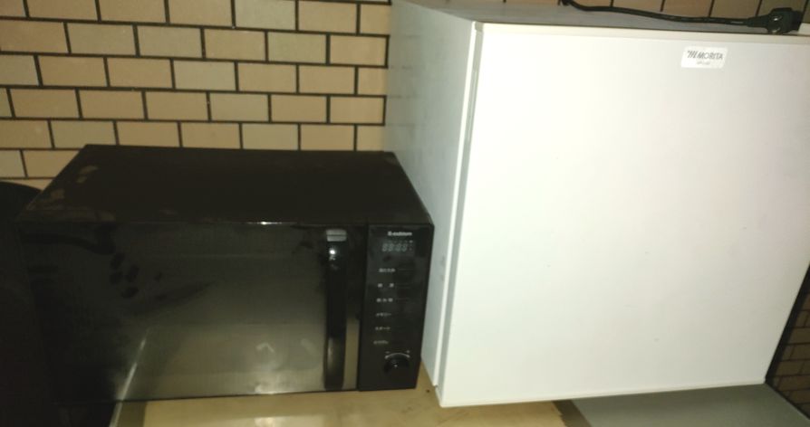 その約束での入手方法ですが、1つはジモティーですが小型冷蔵庫(小型でないと置けない)と電子レンジ等は、リサイクルショップの業者が高い価格にての販売が多く、ならヤフオクで探しましたよ。