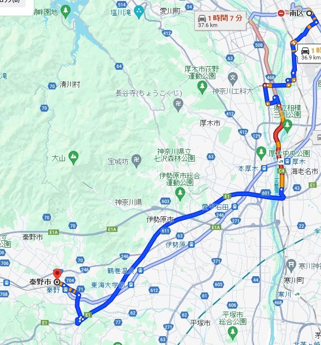 昨日早めに昼食を採って、13時少し前に自宅を出発しました。ナビで住所を入力したら、小田急線の柿生駅周辺を通過し、町田へ入って相模原方面へ向かい無事に目的地へ14時頃到着しましたよ。過ぎにも品物を受取、次の秦野市をナビに入力して出発しました。