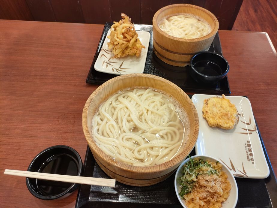 行って来ました丸亀うどん、毎月1日は「釜揚げうどん」半額サービスの日です。
