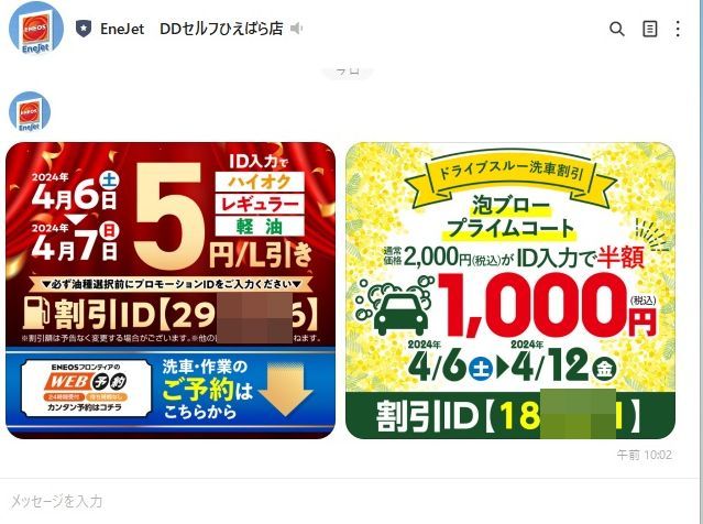 ガソリンも4月1日に大幅値上げ!いや~ガソリンも上るとは予想していたものの、大幅に上がりましたよね~~ 先々週には遠地へ行ったもので半分以下になっていたが、割安IDが来ないもので我慢していました、最近は車のタンクの1/5程に迄来たもので、そろそろ入れなければと車で走る度に思っていました。 そうです、来ましたよ~ENEOS遣り引きライン通知が~~ はい、そうです。リッター5円引きですよ~これを待って居ました。明日にでも入れに行きます。多分30数リッター入りますもので150円以上の値引き+会員割引とENEOSカード割引もあって、リッター170円が160円程に成る筈です。