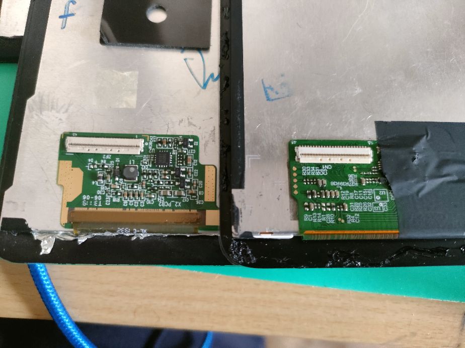 そして不良の液晶のコネクター部分を全て剥ぎ取り、僅か上にずらして貼り付けると正規の位置になり、ケーブルを繋いで本体にセットしてもケーブルは外れずに解決しましたが、無理やり剥がしたもので壊れました。