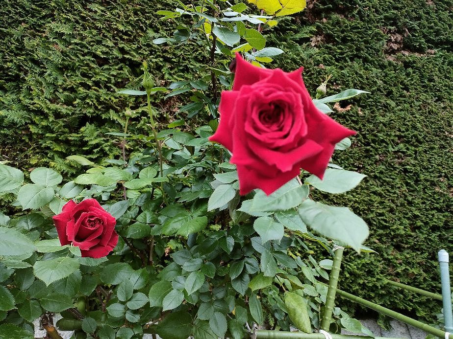 躑躅も手入れなく、毎年花を咲かせて貰えています。同時に真っ赤な薔薇🌹も咲きましたよ~~