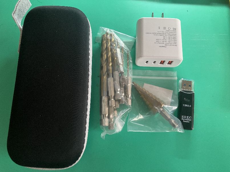 総額2000円を超えないと送料が無料になりません。そこで他に色々探した結果、②チタン製?ホールカッターと③小型傘と④USB充電器(usb-a2個+usb-c2個)65wだったかな~+⑤USBカードリーダーですね。