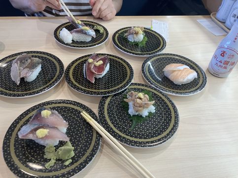 これだけは2個注文しましたよ。普段は2貫1皿をシェアするのですが、美味しいのは別々に注文するんですね。醤油は持参する必要なく、ここにも好みの九州のさしみ醤油があります。