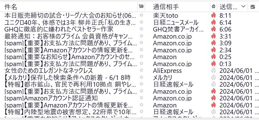 過去から多くの詐欺メールが頻繁に届くもので、全て対応出来ませんが、しかし正しいメールで有っても無視した形態になる事が多少とも不安ですよ。今月初め頃にはamazonだけでも1日に数件、多い時には10件近く遣って来ます。メールアプリがspam判断して頭に「spam」と表示されますもので多少とも安心ですが、しかし毎日ウジャウジャくるもので溜まりません。
