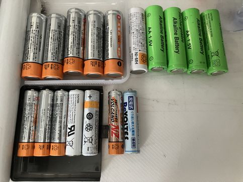 実際には充電式電池の数は我家にはもっと沢山あるのですが、時計やリモコン機器に装着しておりまして、また孫たちのオモチャにも入れていますね。