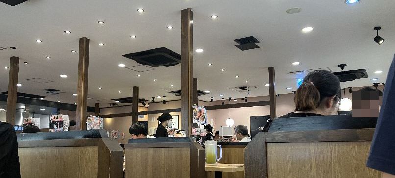 この店舗、満席だと200人は入れるのかな~~しかし4人席に2人で使う人が大半、当然6人席や横長テーブル席(単独用)もございます。確かに普通のラーメン店と比較して清潔感は高いです。