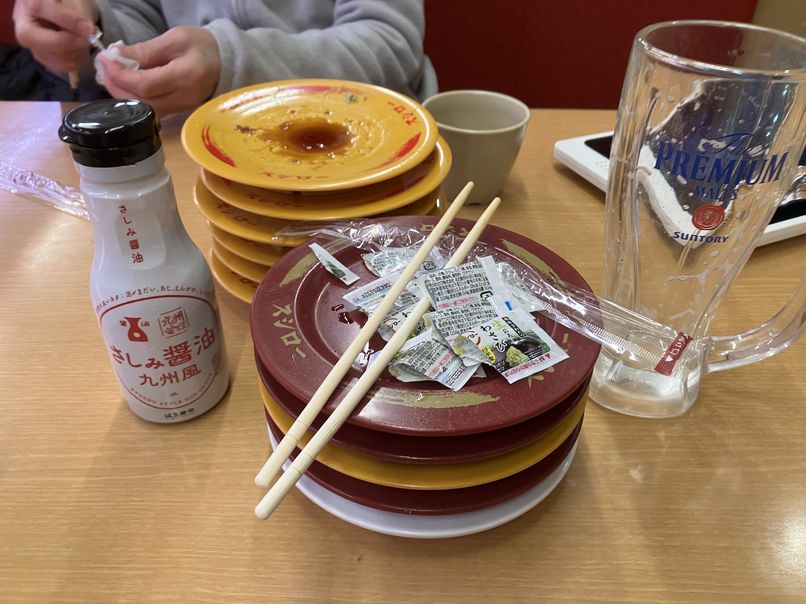 昨日今年最後のスシローにて晩餐^^そうです、寒い中近くのスシローへ歩いて行きましたよ。 客はそれ相応に入っていましたね、中には帰省された家族や海外へ行かれて少ないと思っていたが、意外と多い方だったのでしょう~物価上昇と厳しい現代ですから遠地への移動を避けられたのか? しかしスシロー最低でも@120円へ値上げしていました?浜すしへ行く回数が多いのか? そうです浜すしの醤油持参で行きましたよ^^ 年末なもので婆さん多少高い寿司を注文していますよ^^爺はビールも頂きました。 結果10枚程で2200円程に、爺婆シニヤカードで@50円引き(2人で△100円)ですね。