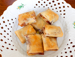 ◎バナナとあずきの春巻き辛いお料理のあとにぴったりのデザート。さくさくの皮の中にはとろ~りバナナとつぶつぶあずき。バナナは濃厚なカスタードクリームのよう。ゆであずきの缶詰を使うので手軽にできます。