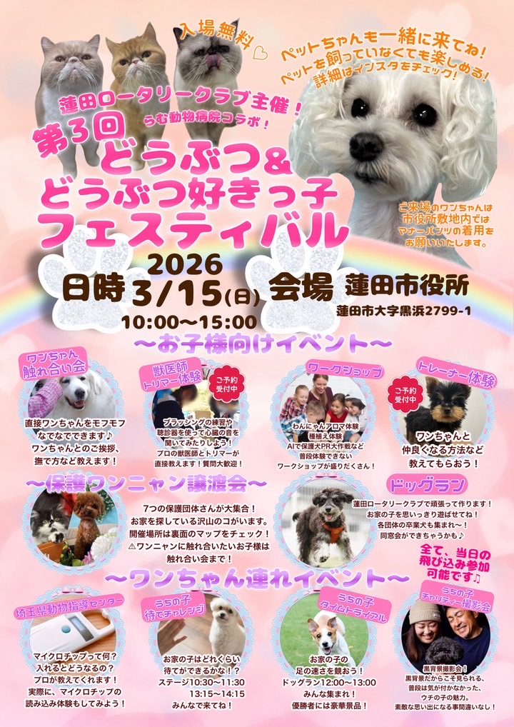 ※3/15(日) 譲渡会 @蓮田市役所(埼玉県蓮田市) 開催